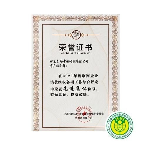 伊莱克斯(中国)获中国家用电器服务维修协会、上海静安区消费者权益保护委员会嘉奖