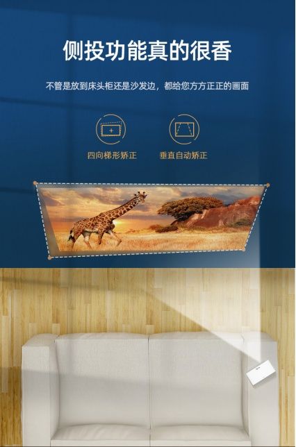 宾狗P3-pro投影仪具有侧投功能,不管是放在床头还是衣柜上,都可以让我们观看到方方正正的画面。同时,该机具有全自动对焦功能,时刻保持画面的清晰度。