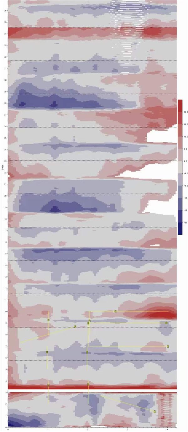 2. 大面积红蓝热力图表示垂平情况,缺陷区域一目了然,便于针对性整改,精准高效