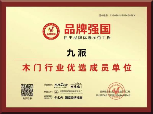 据了解,九派木门产品严格按照ISO9001:2000质量体系进行生产,本着“健康环保”的精神,以诚信求发展,以质量拓市场。
