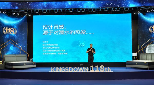 据悉,118周年限量款床垫KD2022 & KD2022PLus的设计灵感来源自于对潜水的热爱,在水中,我们放佛回归到人类原始的状态——母胎里,在这个安全舒适的环境里,我们可以自由自在地舒展,惬意地享睡。为了实现这种独特的睡感,KINGSDOWN全球设计高级副总裁John Farnham(约翰·法纳姆),凭借在睡眠科学领域沉浸多年的经验和对全球奢华材料的独到理解,将自然理念融入睡眠,打造出这两款献礼118周年的限量纪念款床垫。
