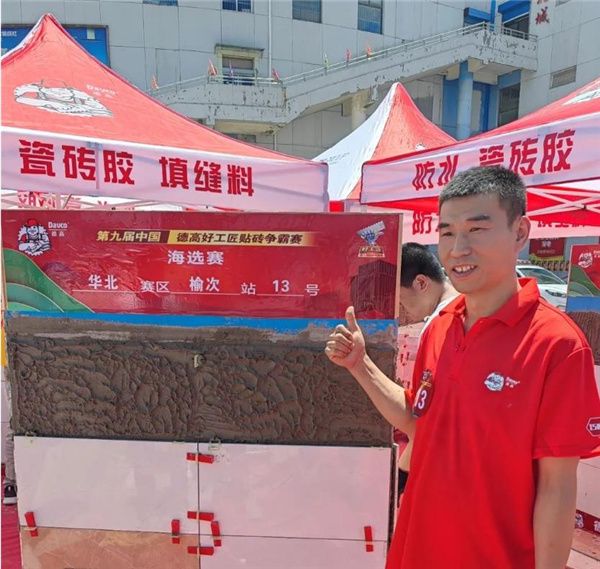真没想到,贴砖师傅也可以有这样的机会,在大伙面前露一手!非常高兴在这场比赛拿下个人第一的好成绩,德高不仅有好的产品,还有这样展现技艺的好机会,我感到非常荣幸,也会继续努力。