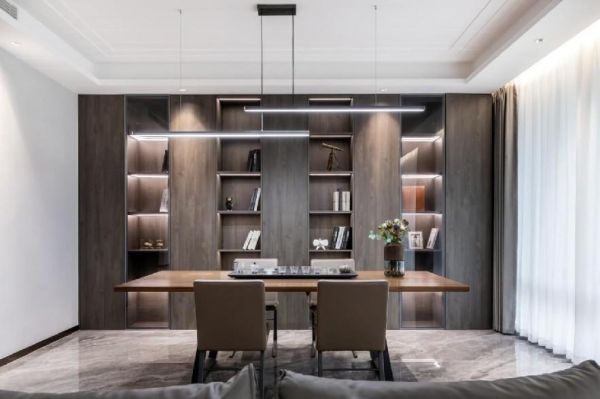 品界装饰设计师王海也同样建议:“由于客餐厅一体化越来备受欢迎,餐厅选择一张大大的桌子很有必要,不仅满足一家人围坐喝茶聊天,也是孩子书写、辅导功课、组装玩具等互动娱乐的地方。”
