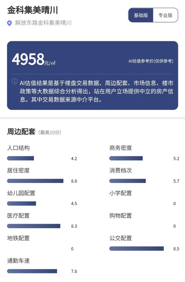 虽然该区位置偏远,不过记者看到,目前这里已有金科、建业、万达等多个全国性房企开发项目。如位于解放东路的金科?集美晴川,每经品房小程序显示,目前该项目的AI估值参考价为4958元/平方米。