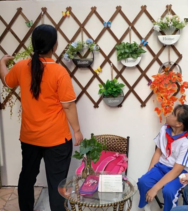 吴姐说,天气好的时候,曦曦还可以坐在藤椅上写作业,高低正合适。公益团队小伙伴还专门给曦曦留了几只蝴蝶装饰,让她可以自己动手,粘贴到花架上。