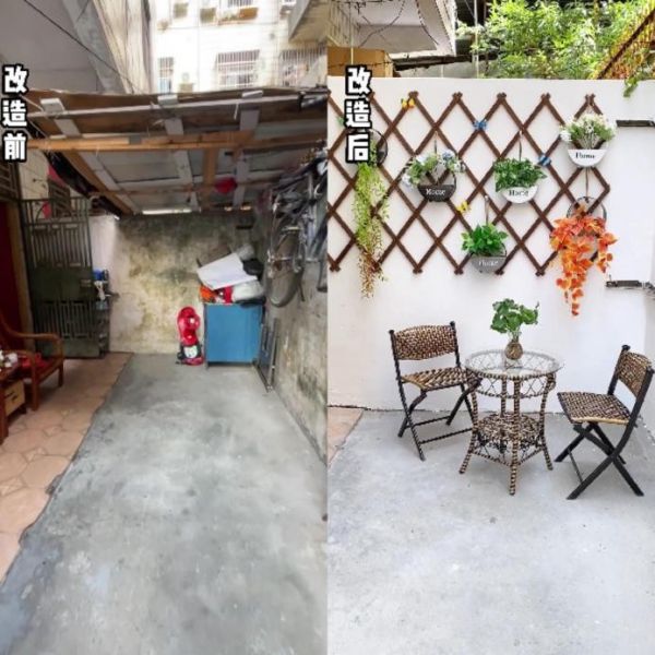 经过土巴兔改造后则焕然一新,推开大门,首先映入眼帘的是被打扫的干干净净的小院,一个长长的花架栅栏钉在墙上,挂着几盆色彩鲜艳的花束,两把折叠藤椅和一个茶几摆放在栅栏前,这是公益团队小伙伴送给吴姐女儿曦曦的第一处惊喜。