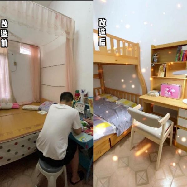 说干就干,土巴兔公益团队小伙伴经过反复对比筛选,最终确定了一张1.8米上下床和具有收纳功能的书桌,考虑到对曦曦眼睛的保护,还专门买了一台不闪频的护眼台灯。