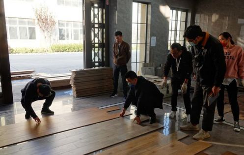 在百格贝特研发中心,工厂负责人拿出最新的几款样品,对产品卖点、优势、工艺等做了详细讲解,柴总以及品控等人结合当下经销商的情况,也对花色选样提供了充分建议。