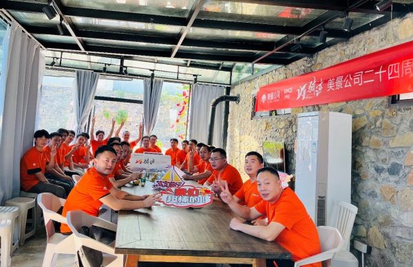 再过一会儿,舒适猫贵阳的小伙伴们将会在草地上摆出数字“24”的造型,以庆祝舒适猫公司所属美景集团24周年的生日。