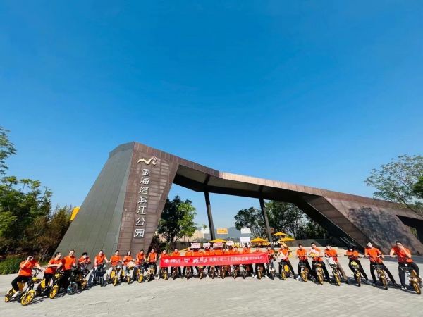 舒适猫重庆的骑手们正驰骋在重庆金海湾滨江公园,欣赏嘉陵江畔的景致,