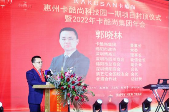 卡酷尚集团董事长郭晓林上台致辞时表示,“惠州三和卡酷尚科技园是卡酷尚集团与惠阳经济开发区(三和街道)拾围村九子小组“乡村振兴”战略项目的成果,项目将促进乡村高质量发展,促进农民增收,改善农民生活,同时园区的成功封顶也是卡酷尚发展路上一个重要里程碑,更是卡酷尚产业地产板块未来的重要核心,依托卡酷尚13年健康产业持续深耕,将在全国布局更多健康产业园区。”