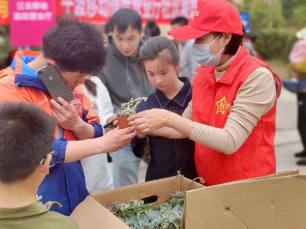 这场植树节公益活动别出心裁,现场吸引了很多孩子们参加。在活动现场,姚景花园的“星茂志愿者们”帮助积极参与的小朋友们,用旧书来换取绿植多肉,现场还设置了专门区域,供孩子们挑选自己喜欢的多肉植物。