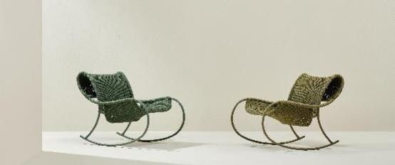 这一整套家具包括餐椅、休闲椅、扶手摇椅和边几,精巧设计融入其中,飞 天系列所运用的编织工艺展现出美妙细腻的肌理,远观近看各有千秋,让人想起