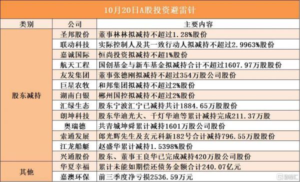 时间:2025-10-17 22:13圣邦股份董事林林拟减持不超过1.28%股份;联动科技实际控制人及其一致行动人拟减持不超过2.9963%股份;嘉诚国际股东恒尚投资拟减持不超1%股份;航天工程股东国创基金与新车基金拟减持合计不超过1607.97万股股份;友发集团董事张德刚拟减持不超过354万股公司股份;巨星农牧股东和邦集团拟减持不超过2%股份;湖南白银股东郴州国控拟减持不超过2%股份;华夏幸福累计未能如期偿还债务金额合计240.07亿元;嘉澳环保前三季度净亏损2536.59万元