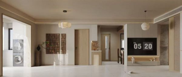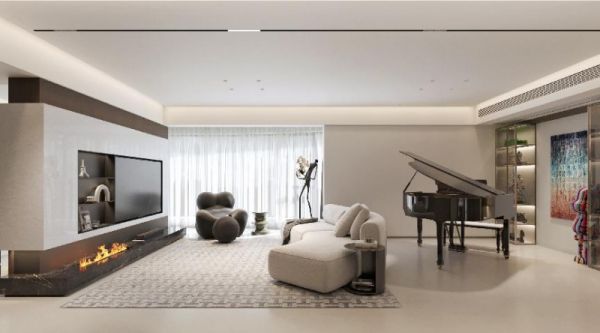 遵循“少而精”原则,减少冗余隔断与家具,保障空间通透开阔、动线流畅;弱化功能分区,通过地面材质或家具摆放实现客厅与餐厅的自然过渡,营造“无界”的生活氛围与整体松弛感。
