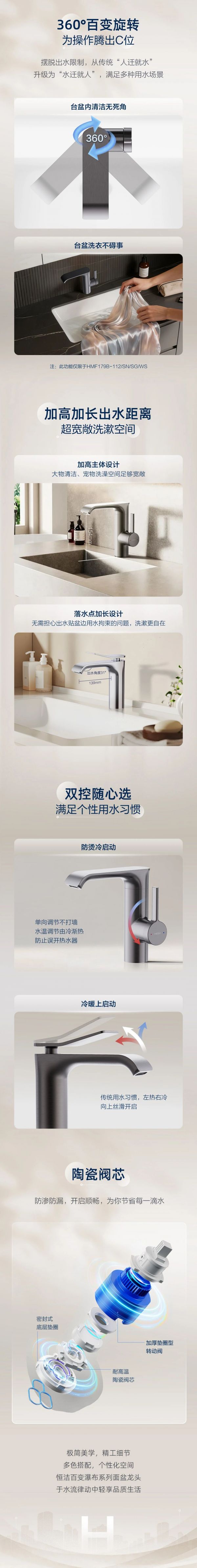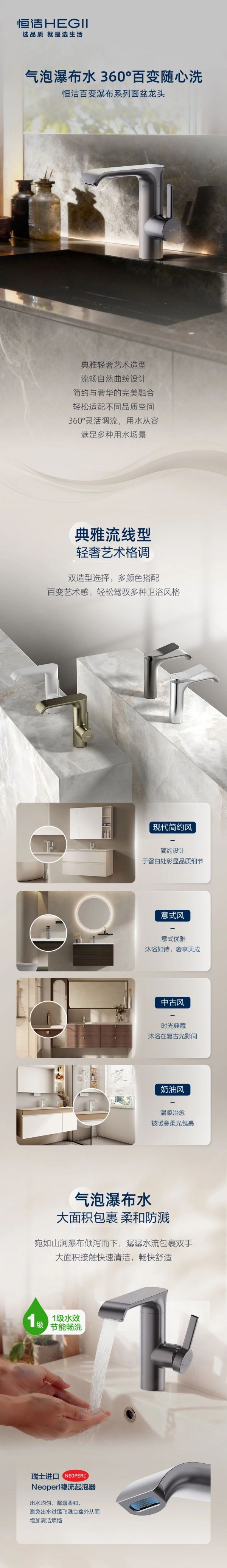 恒洁百变瀑布系列面盆龙头,满足多种用水场景
