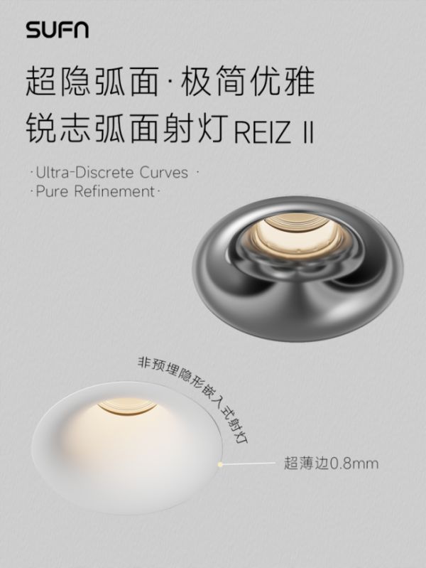 锐志弧面系列作为一款非预埋式射灯,它试图绕过传统预埋灯具对施工环节的高要求,直接实现安装后与天花曲面贴合的效果,以达到“隐奢”的光影目的,为简化施工流程提供了可能性。