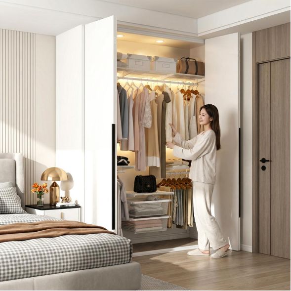 在环保方面,美达斯金属衣柜采用优质低碳钢材质,搭配先进的表面静电喷塑工艺,产品经瑞士SGS认证、QA国际认证等权威检测,无醛无异味,达到母婴级环保标准。在空间利用方面,美达斯首创“模块化挂墙系统”,空间利用率比传统衣柜提升1.5倍,轻松容纳上百件衣物。隐藏式螺丝孔、圆角防撞设计、静音滑轨等匠心细节,让收纳成为一种享受。赫拉系列的原木风古韵、格瑞系列的黑色高级感、莱恩系列的纯白时尚……多元产品线覆盖全年龄段的审美需求。