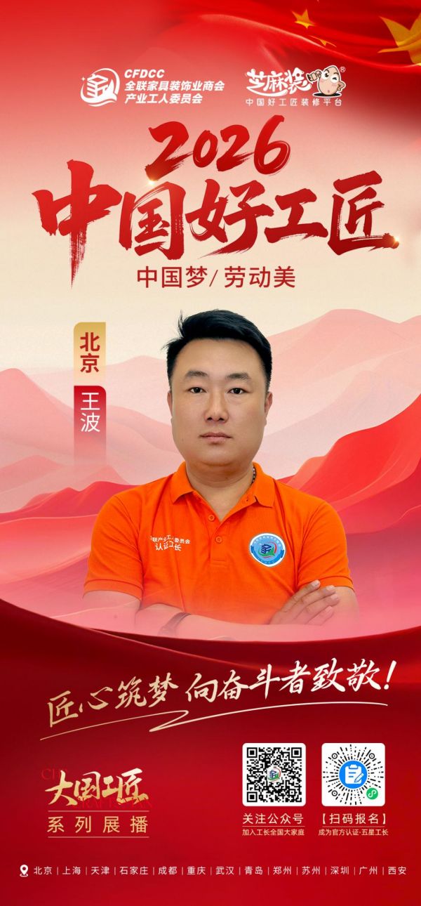 二十载跨界深耕,王波从医学专业学子成长为装修行业标杆,用医心的严谨把控细节,用匠心的坚守保障品质,用创新的服务拓展边界。在他身上,大国工匠精神不是单一的技艺传承,而是跨界融合的智慧、诚信为本的担当、与时俱进的进取。他以回龙观为根基,用一砖一瓦筑就万家安居,用一言一行传递职业温度,证明工匠精神从来不是墨守成规,而是在坚守中创新,在专业中沉淀,为家装行业的高质量发展注入多元动力。