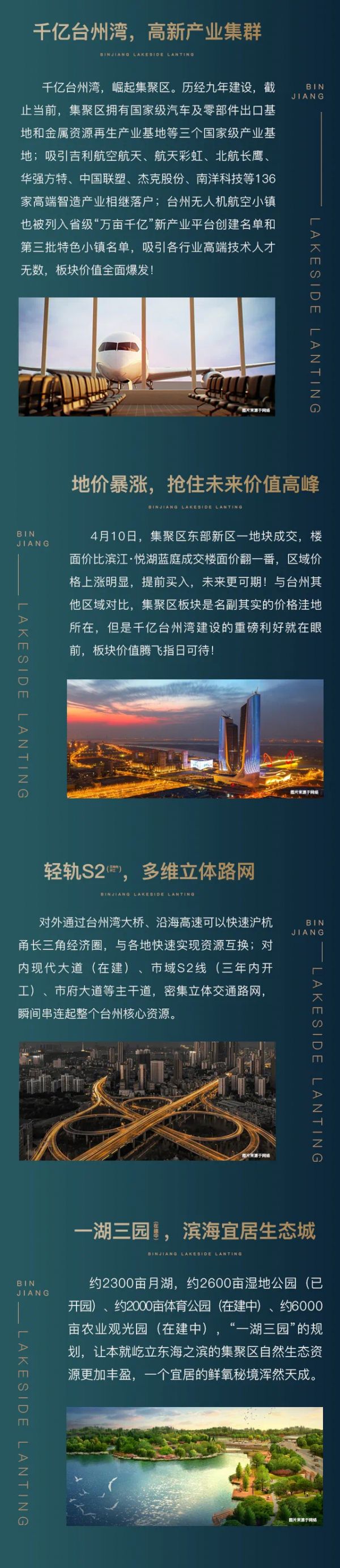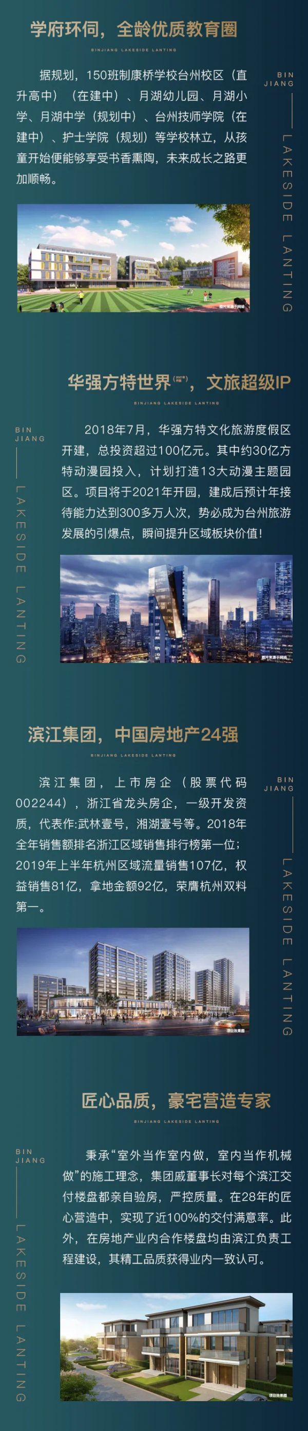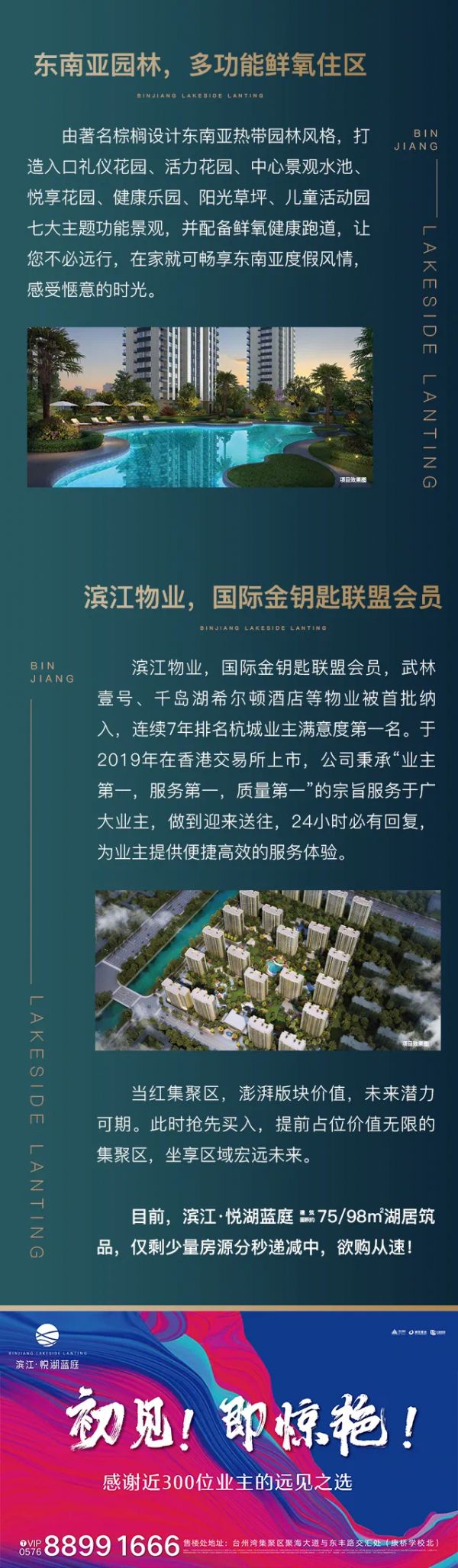 温馨提示:1.本资料所有内容及资料信息来源截止2020年7月,有效期为4月,本资料仅为要约邀请,不具有约束力,仅供参考,不作为销售承诺和合同附件;买卖双方的权利和义务以双方订立的《商品房买卖合同》为准,所有规划仅供参考,具体交楼标准按《商品房买卖合同》所示;2.本宣传资料关于项目周围学校,交通,环境等设施的介绍,旨在提供相关信息,不视为我司对此作出了承诺;3.因编辑需要,文字和图片无必然联系,仅供读者参考;文中所转载的资料版权归所有权人所有,因非原创文章及图片等内容无法一一和版权者联系,如无意中侵犯了媒体或个人的知识产权,请联系后台或致电客户专线0576-88991666,我们将立即予以删除;4.台州滨呈房地产开发有限公司在法律范围内有权对本资料作出解释。项目推广名:滨江·悦湖蓝庭 ;开发商:台州滨呈房地产开发有限公司
