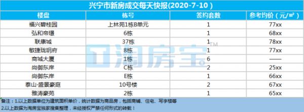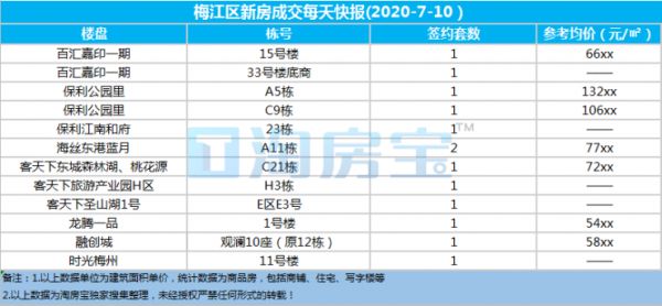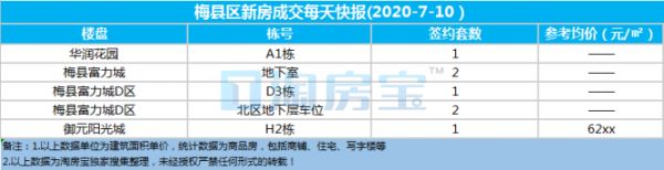梅州每日楼市播报:2020年7月10日新房成交数据报告