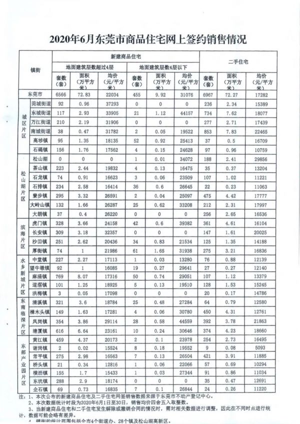 与通知一并公布的,还有东莞6月份一二手房的网签数据与库存情况: