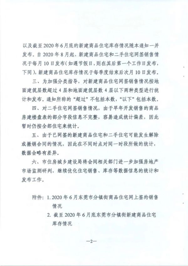2020年6月的新建商品住宅和二手住宅网签销售情况以及截至2020年6月底的新建商品住宅库存情况随本通知一并发布。自2020年8月起,新建商品住宅和二手住宅网签销售情况于每月10日发布(如遇节假日,则在其后第一个工作日发布,下同),新建商品住宅库存情况于每季度结束后次月10日发布。