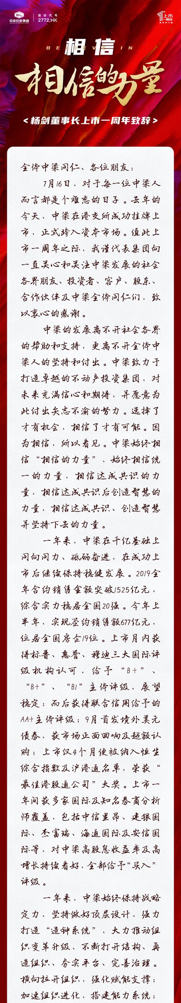 相信“相信的力量”丨杨剑董事长上市一周年致辞