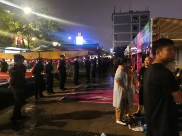 据该项目一名工作人员介绍,当晚前来参加活动的周边市民人数远远超出预期,从而超过该项目申报材料的最高人数。为了及时消除安全隐患,添设安全设备,盐城市城管局连夜安排部署各级城管部门疏导群众,整理器材设备,清理现场。活动暂停且延期至下月在室内举行。