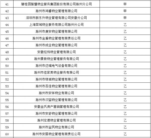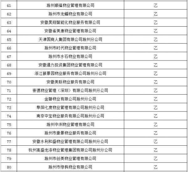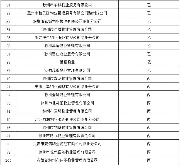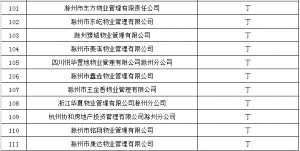 2019年滁州市城区物业服务企业