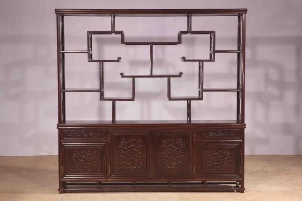 多宝阁是一种在室内陈列古玩珍宝的多层木架,是类似书架式的木器。中分不同样式的许多层小格,格内陈设各种古玩、器皿,故又名为“十锦槅子”。其每层形状不规则,前后均敞开,无板壁封挡,便于从各个位置观赏架上放置的器物。