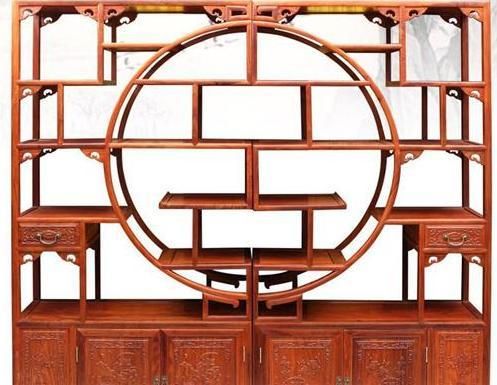 多宝阁用途非常广泛,它既是一种内檐装修,又是室内陈设的家具,或倚墙而立、装点居室,或隔断空间、充当屏障,还可以陈设各种古玩器物的用途,点缀空间美化居室。当然,博古架最主要作用还是用来分隔室内空间,即当隔断用。将博古架作为隔断,既能增强空间的层次感,又不会使中式家具显得空洞。