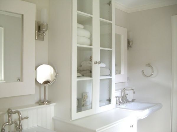 这里的话我们可以用来收纳一些瓶瓶罐罐,不是经常能用到的那种。有时一堆摆放在一起,让人眼花缭乱的,很容易弄错或是碰到地上砸坏。这就让每天洗漱很麻烦,所以打造一个侧面高柜,就很好解决啦。