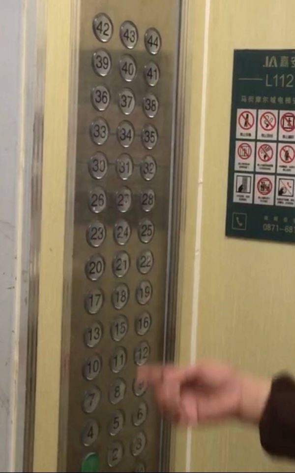 邓女士是昆明市西山区马街摩尔城的回迁户,她最近反映:这个楼盘烂尾了十年,好不容易复工,最近终于可以拿到回迁房了。但没想到分房的时候,她却抽到了一个29层的奇怪户型,电梯里没有29层的按键,要想进家门,得穿过6道防火门。经过多方询问才得知,他们的房子,处于整个楼体的消防避难层。类似的情况,在这个回迁房楼盘里,至少有六户。