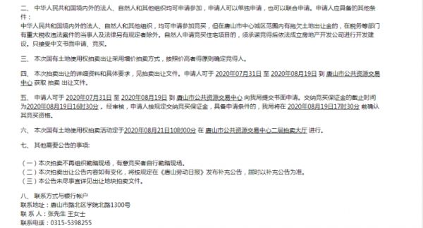 唐山市公共资源交易中心国有土地使用权拍卖出让公告