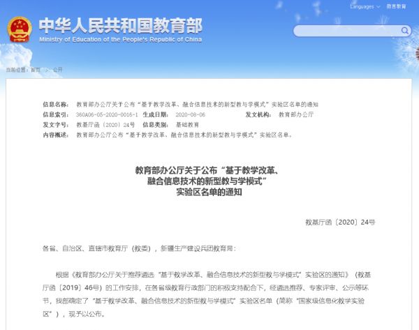 教育部公布了“基于教学改革、