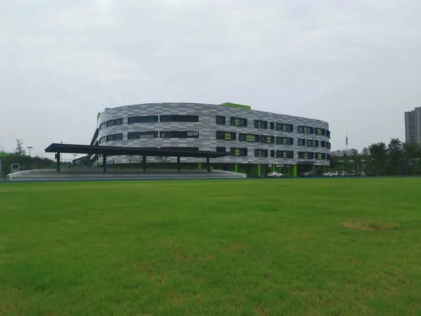 该校由集团下属新城公司代建,位于建邺区黄山路以东、问学路以北、金沙江东街以南、嵩山路以西,是我省首批中德绿色生态领域合作示范项目,旨在建设具有德国标准的绿色小学示范建筑,并达到国家绿色建筑三星标准。学校规模为6轨36班,总建筑面积2.8万平方米,绿地率达30.6%。学校造型独特,为“日”字形弧形建筑,区别于一般国内学校采用的方正建筑通过连廊连接的形式,而设计成弧线形的外形使建筑物动感而又显活力。外墙以标志性的德国灰色系色彩为主,由四种深浅不同的灰色铝板搭配组成建筑外墙主色调,再搭配不同明度绿色铝板及外墙涂料加以点缀,使建筑飘逸而灵动,稳重而不失活泼。