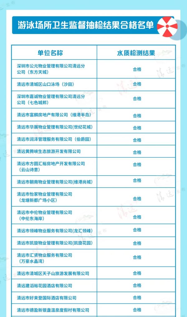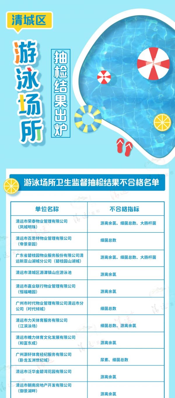 清城64个泳池抽检公布!有你常去的小区吗?(附名单)