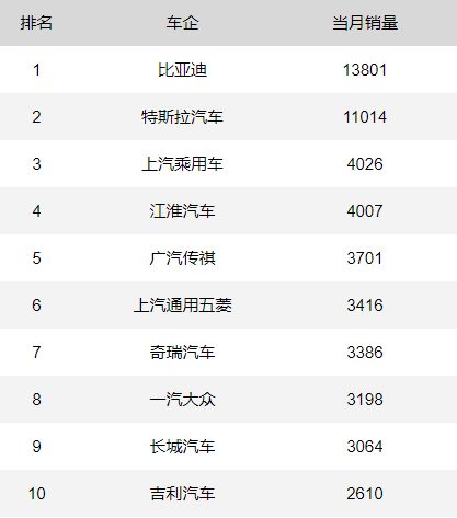 2020年7月新能源汽车销量排行榜。