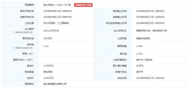 【竞买情况】2020年8月13日08时00分开拍,仅一轮报价,底价成交。