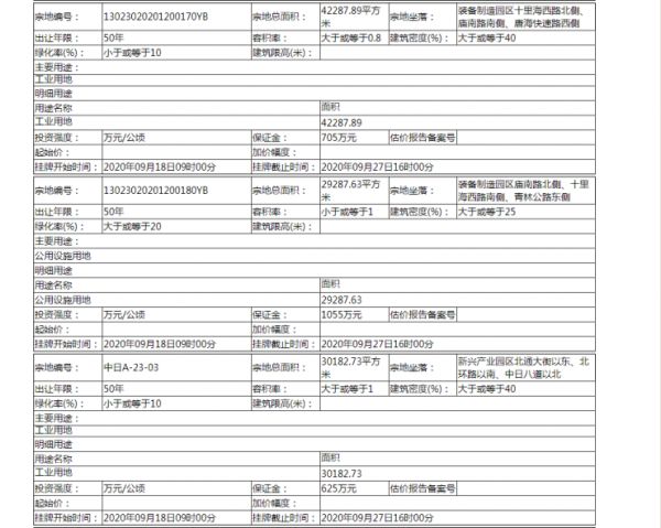 曹妃甸新区公共资源交易管理服务中心国有土地使用权挂牌出让公告
