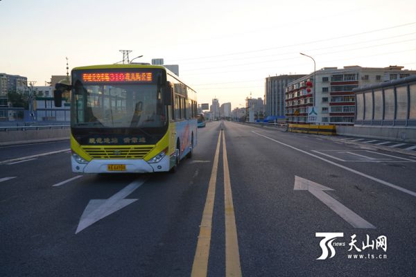 8月31日早晨7时30分,华凌立交桥上,一辆行经水磨沟区、沙依巴克区和天山区的310路公交车正在载客运行。