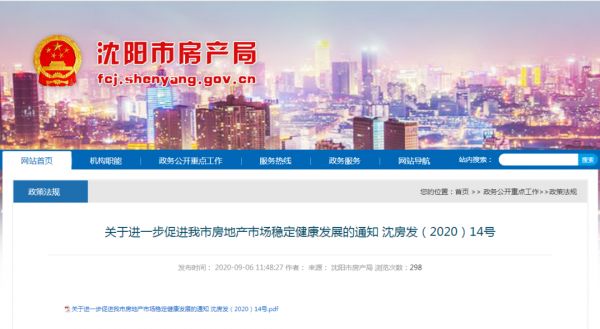 9月6日,辽宁省沈阳市房产局、沈阳市自然资源局等联合发布关于《关于进一步促进我市房地产市场稳定健康发展的通知》。