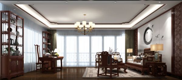 中国人自古好客,挑高空间客厅让人顿觉舒适、宽敞和气派。简洁的线条描绘出深远的意境,大理石背景墙、实木家具,无一不在用质朴的纹理婉转地轻吟着古典和优雅。落地窗将自然光柔化成漫射光,洒满一室清辉。