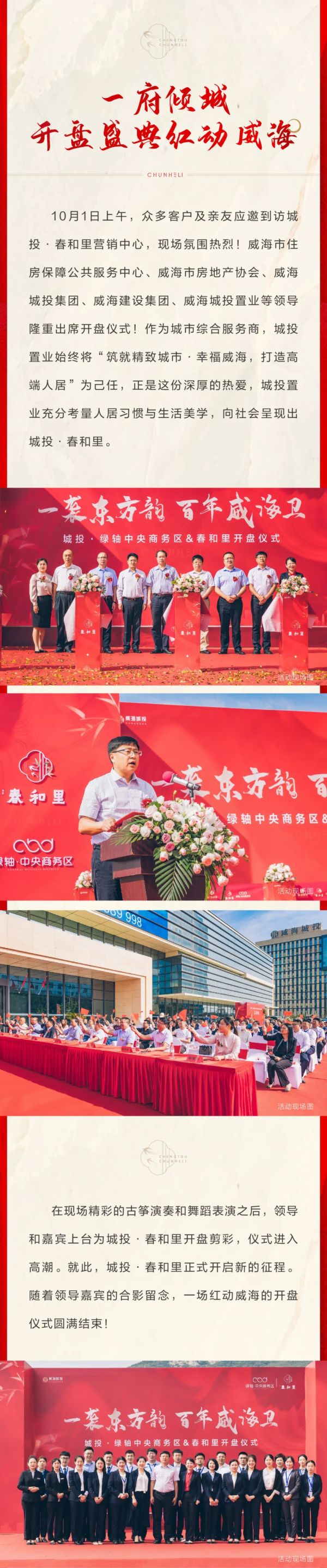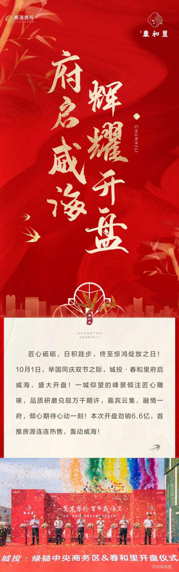 府启威海,辉耀开盘:10月1日城投·春和里劲销6.6亿