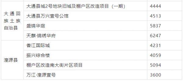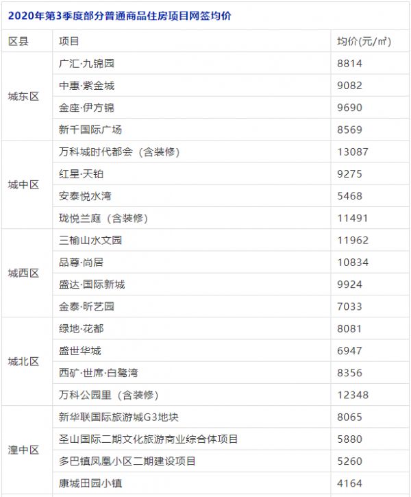 西宁2020年第3季度部分普通商品住房项目网签均价