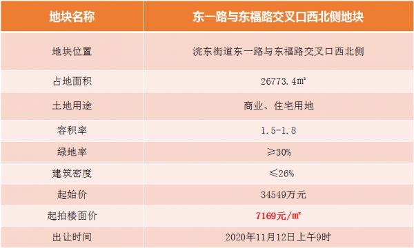 起拍楼面价 7169 元/㎡