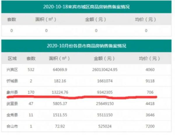 近日,有网友反映,来宾市象州县10月份的商品房销售均价低至706元/平方米,让人难以置信。这是怎么回事呢?