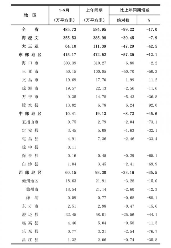新鲜出炉!前9月海南全岛房屋总销售数据