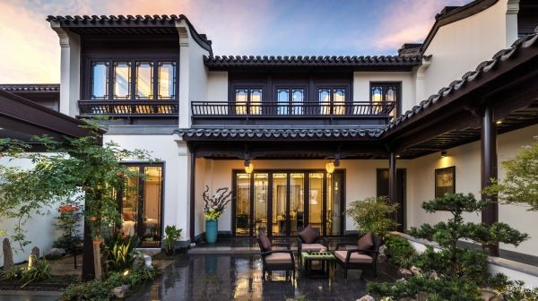 蓝城集团择址安吉县城西南生态谧境,打造的健康生活小镇,地块容积率仅0.44,绿地率37.2%,营造总建筑面积约13万方山水低密住区,规划中式合院及花园洋房两类产品。其中,一期中式合院面积约95-180方,主力户型95-135方,庭院面积60-280平米不等,均为精装修交付。